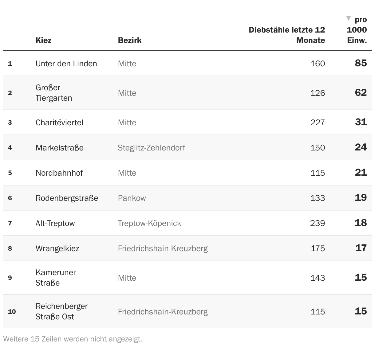 In welchen Kiezen werden besonders viele Fahrräder geklaut?