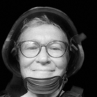 Ich sehe einen Mann im Korridor mit zerzausten grauen Haaren, einem schmalen Gesicht und leuchtenden Augen. Aus irgendeinem Grund steht vor ihm eine leere Babybadewanne. Der Mann trägt nur eine Unterhose, die mit einer großen gelben Wäscheklammer befestigt ist. Er ist nicht nur dünn, sondern völlig ausgemergelt.