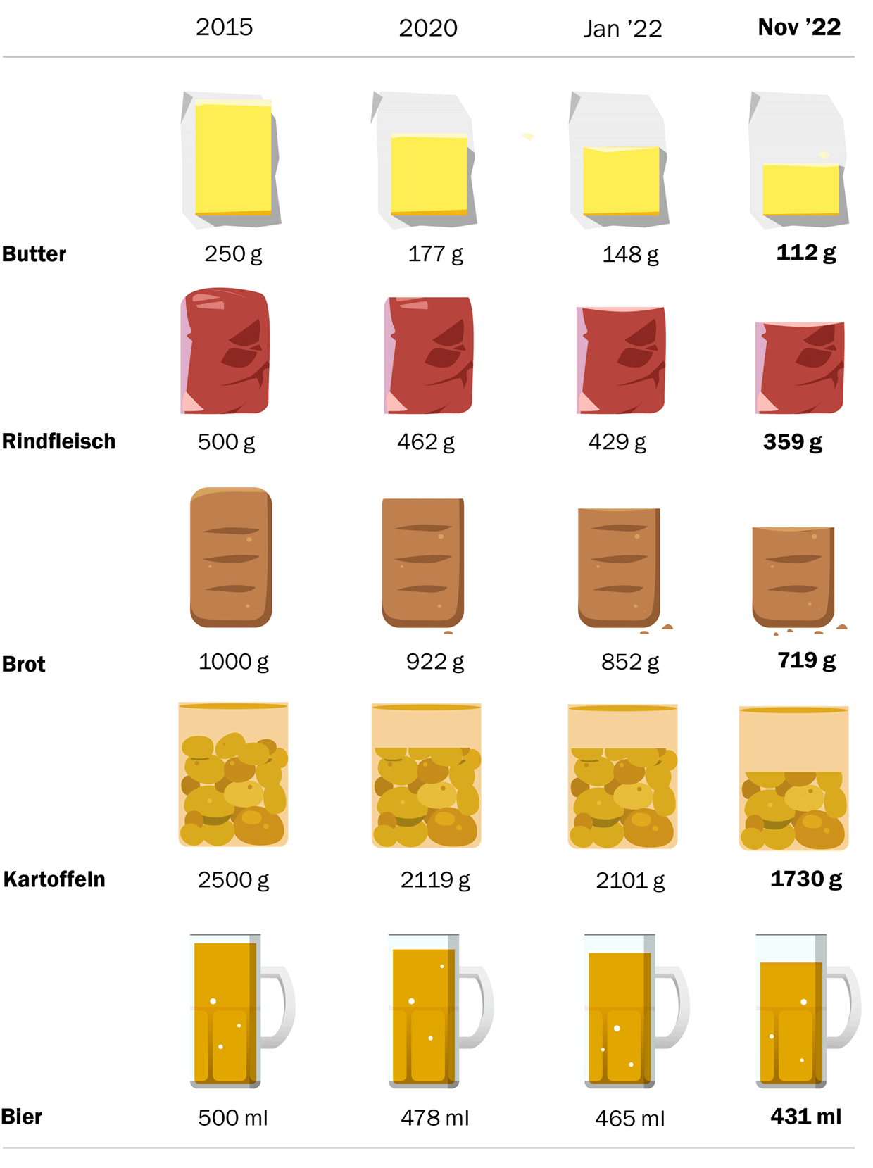 Wie stark der Effekt einer solchen Kettenreaktion ist, lässt sich messen. Das ist die Inflationsrate. Um sie zu berechnen, erstellt das Statistische Bundesamt jeden Monat den „Verbraucherpreisindex“. Der gibt an, um wie viel ein fiktiver „Warenkorb“ teurer geworden ist. Er enthält typische Lebensmittel, aber auch Dienstleistungen – zum Beispiel einen Friseurbesuch. Das ergibt den Verbraucherpreisindex.