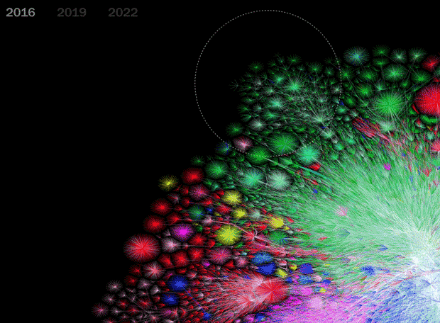 Die Visualisierung zeigt, wie gut bestimmte Teile des Internets mit dem globalen Netz verknüpft sind. Je zentraler ein Teil davon in der Grafik, desto mehr Wege hat ein Nutzer, der von dort startet, in andere Regionen zu reisen. Ein gut verknüpfter Teil des Netzes ist weniger störungsanfällig – ist eine Region gestört, gibt es ausreichend Alternativrouten.