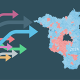 Die Partei, die am meisten Stimmen bekommen hat, bestimmt die Farbe der jeweiligen Gemeinde auf der Karte der Gewinner. Je besser ihr Wahlergebnis, desto dunkler und kräftiger ist der Farbton. Wählen Sie stattdessen eine einzelne Partei aus, wird der Wahlkreis danach eingefärbt, wie hoch der Stimmenanteil dieser Partei im ausgewählten Jahr im Vergleich zu den anderen Gemeinden und im Vergleich zu den Vorwahlen war.